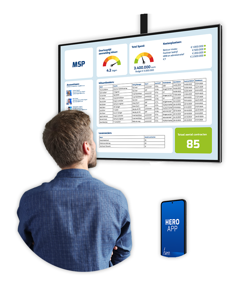 Hero geeft volledig inzicht in alle kosten rondom externe inhuur en toetst tarieven voortdurend op marktconformiteit.